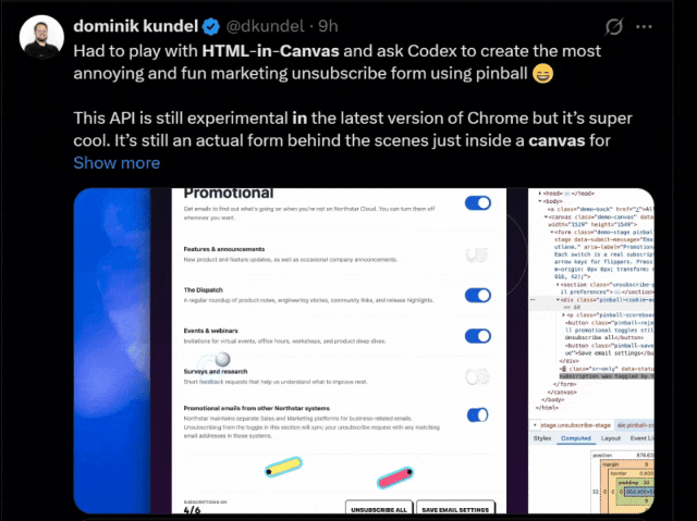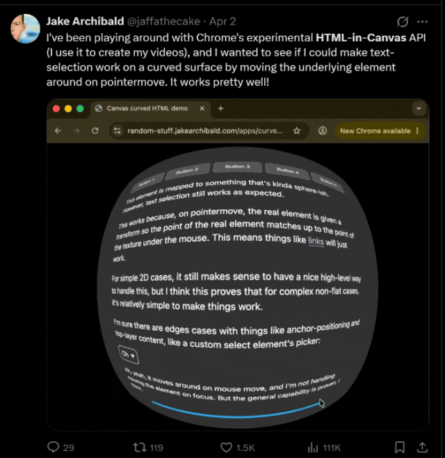 一众尝鲜的网友纷纷表示,HTML-in-Canvas很可能就是下一代网页交互的雏形。