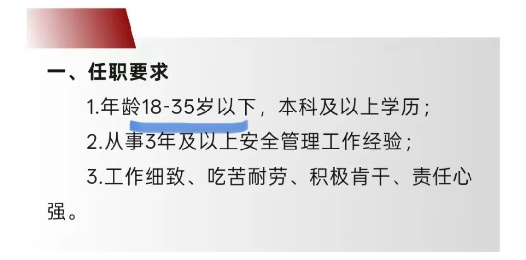 至于“这个年纪”到底是哪个年纪,说的就是前阵子大小姐们在评论区聊到的35岁以上。中国人的35岁是一个巨大的分水岭,谁也别跟我争,至于为什么是35,多看看招工启示就知道了。