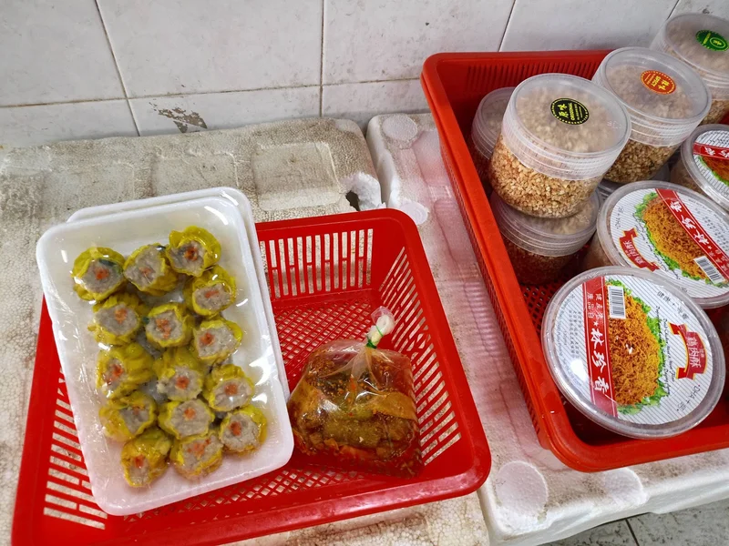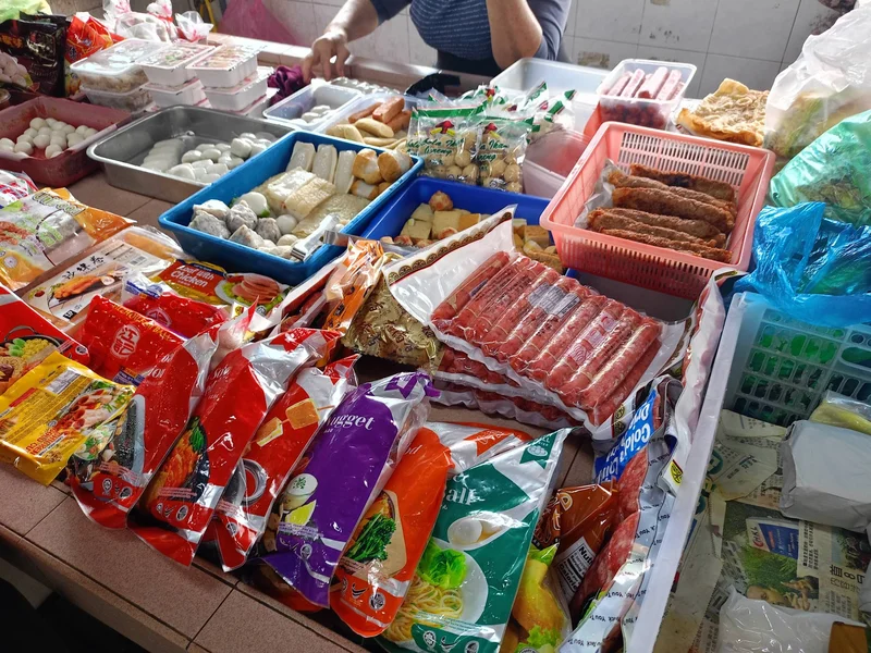 这一档卖的是冷冻食品,鱼丸,肉卷,豆腐等皆有。