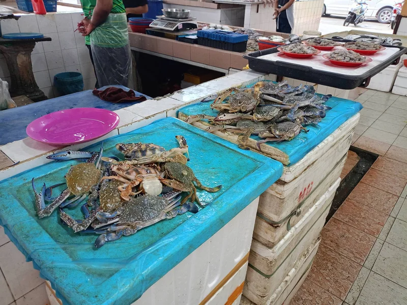 太太买好了就要离开,我只能随便拍。青蟹,红蟹,虾都有,现在渔产都不便宜了,都是物以稀为贵。