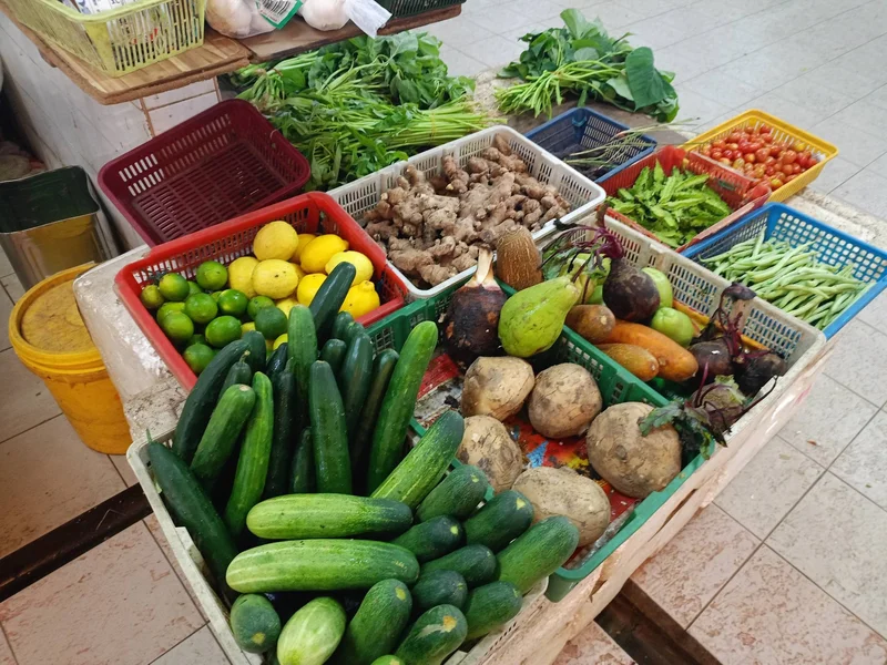 菜市场里面的菜摊有不少,华人也多,通常,天一亮就有人到来巴刹购物。