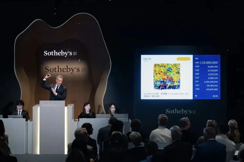 香港苏富比现当代艺术晚间拍卖专场的表现尤为抢眼,成为解读本季市场活力的关键切口。美国抽象表现艺术大师琼·米切尔作品《大峡谷(第七号)》在此专场中脱颖而出,最终成交价超1.37亿港元,远超1100万—3000万港元预估价,荣登本季亚洲拍场最高成交作品,不仅刷新琼·米切尔本人的亚洲拍卖纪录,更成为亚洲拍场有史以来最高价的女性艺术家作品。