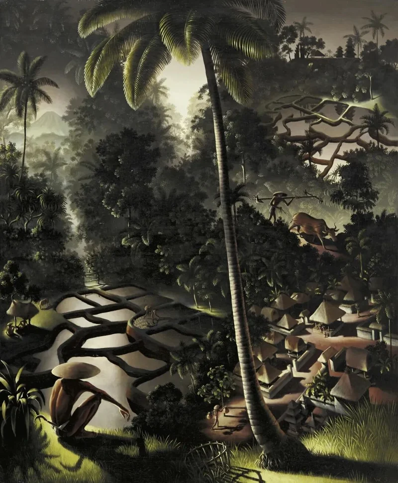 第五名则为本季佳士得拍出的沃尔特·史毕斯(Walter Spies)描绘巴厘岛风景的《登高望远》,以5906万港元刷新艺术家世界拍卖纪录。在20世纪的艺术版图中,有一些名字并不喧嚣,却如暗流般悄然改变着文化的走向。沃尔特·史毕斯正是这样一颗短暂却璀璨的流星。他既不完全属于欧洲现代主义的主流,也不只是“发现东方”的旅人,而是在两种文化之间建立起一座精致而持久的桥梁。他的一生短暂,却像一幅被反复凝视的画,层层叠叠,越看越深。