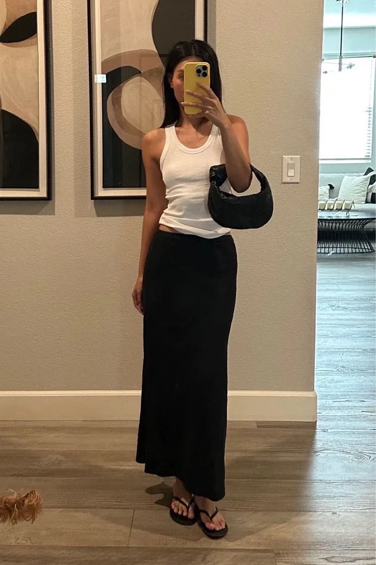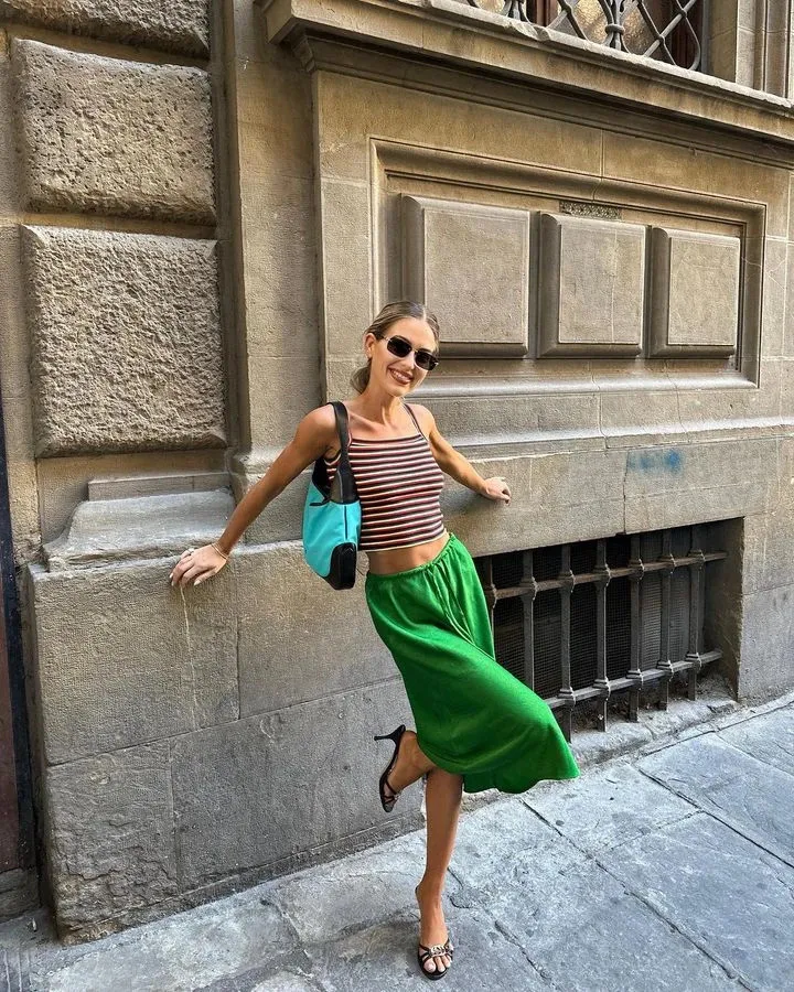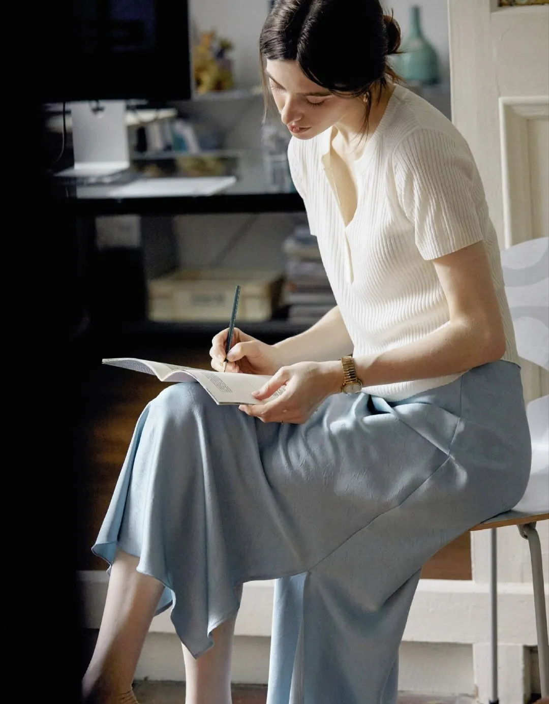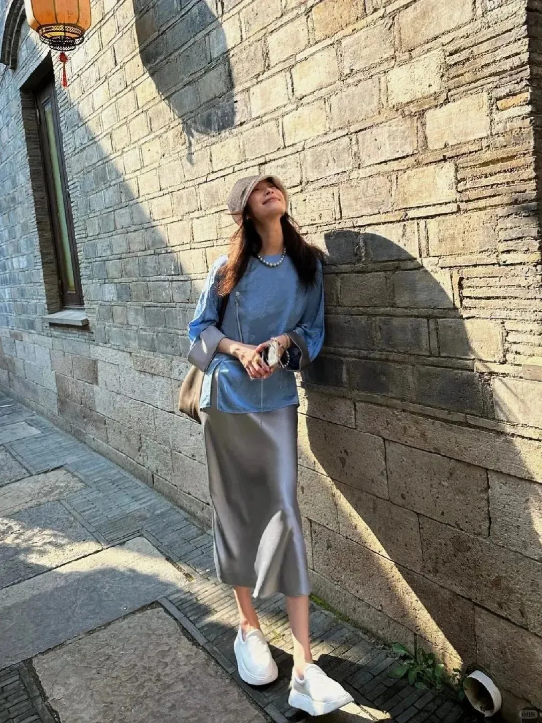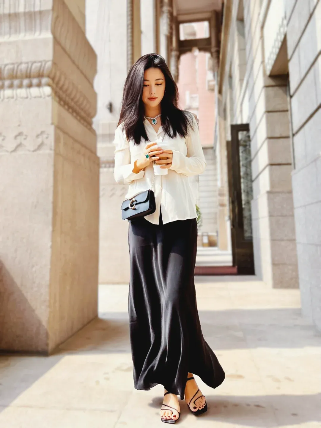 要是今天心情比较好,想要去赴一场茶约,或者只是自己去咖啡馆读半本书,那就换一条真丝半裙。