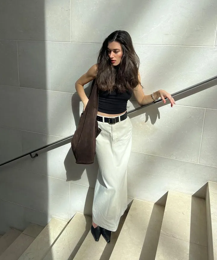 想当潇洒的闲人,那就选条中性的直筒半裙。