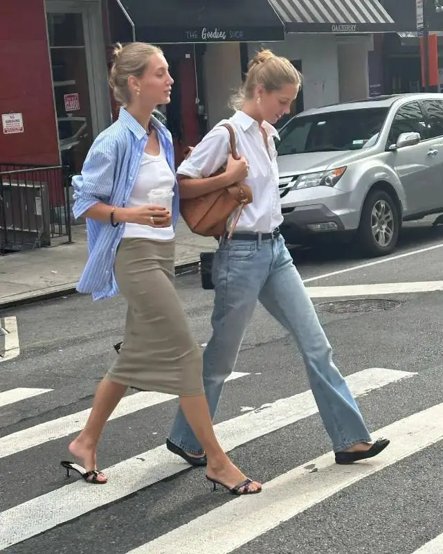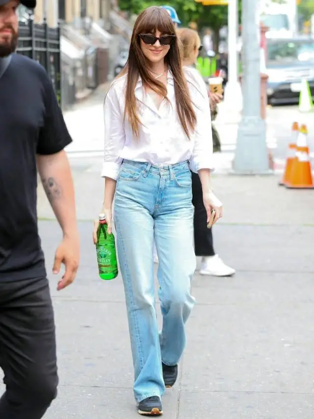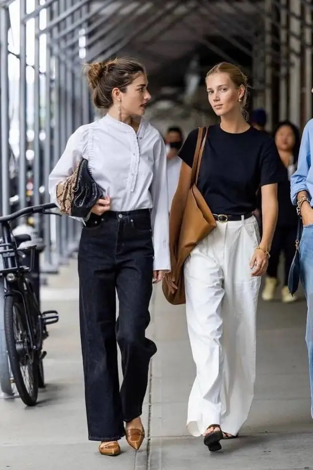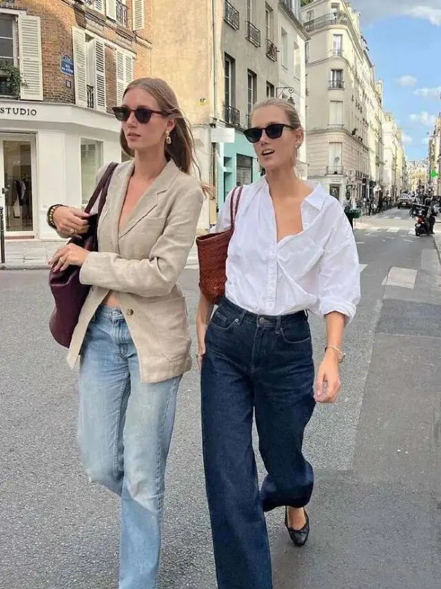 最喜欢的当然是配一条直筒裤,再稍微宽松一点,脚蹬平底鞋。