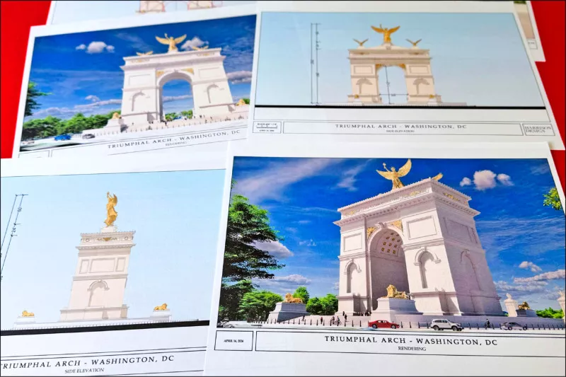 川普政府于十日公布华盛顿特区“凯旋门”设计图,计划在林肯纪念堂与阿灵顿国家公墓间的“纪念圆环”,建造一座高二五〇英尺(七十六.二米)的巨型拱门,纪念美国建国二五〇周年。该拱门主体为象牙白色,装饰大量金色元素。中央矗立高十八米的带翼自由女神像,两侧伴随金色雄鹰雕像,基座四角有金色狮子,并刻有“上帝之下的一个国家”与“全民享有自由与正义”铭文。此拱门能否兴建还需要经美术委员会审查,但因高度超过林肯纪念堂,被批破坏景观与公墓庄严,民主党更是抨击为“面子工程”,已有退伍军人提告阻止。(国际新闻中心)