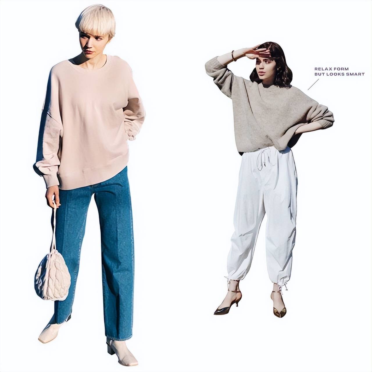 虽然oversize是个很流行的风格,但要注意的是,肩线要合适,不能太过下垂,否则容易显得懒散。