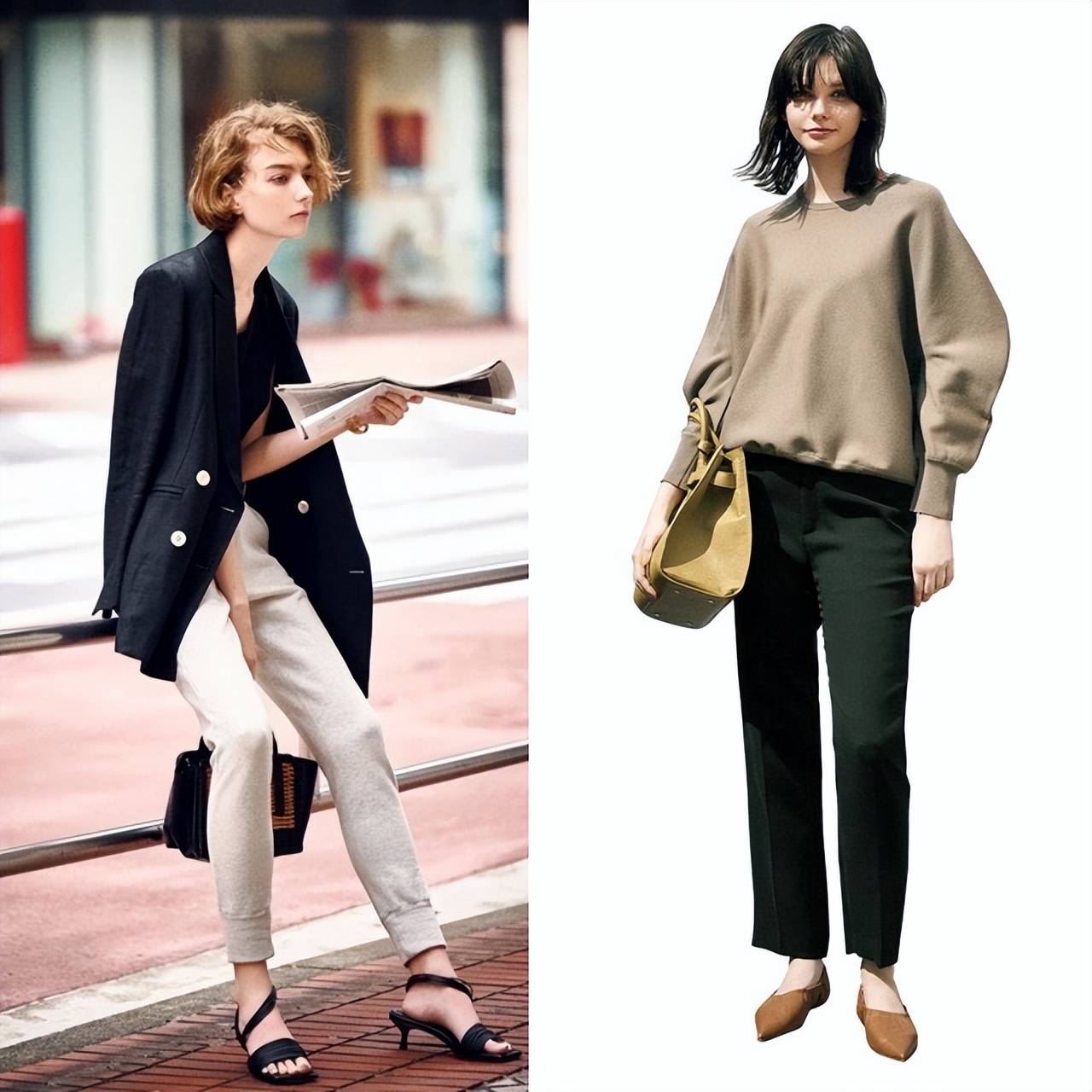 此外,加入尖头高跟鞋等利落的鞋履、迷你包袋以及珠宝首饰等女性化细节,让休闲造型瞬间变得精致考究。