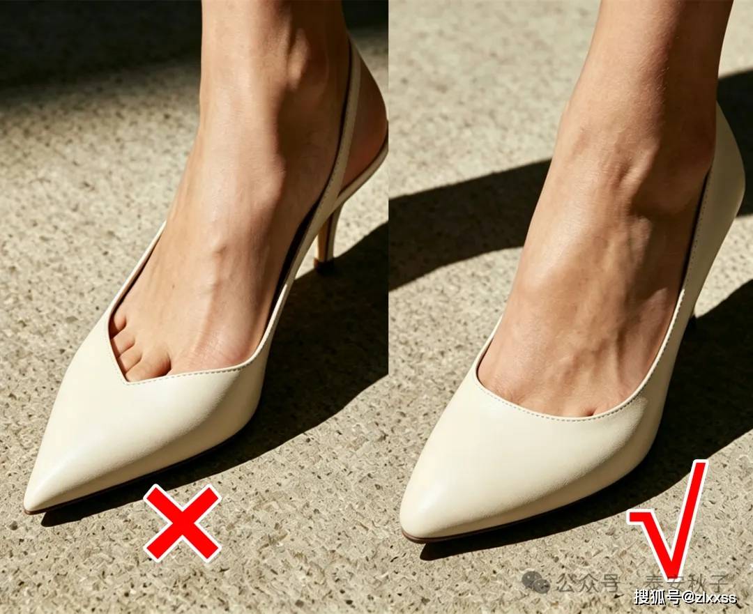 换成宽楦头设计的尖头鞋,则能提供充足的内部空间,让前脚掌自由舒展,舒适度也大大提高。