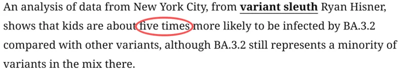不同于以往主要威胁老年人,“蝉”似乎更容易感染儿童,儿童感染BA.3.2的风险约为感染其他变体病毒的5倍,其中,3-15岁的儿童及青少年更易被感染。
