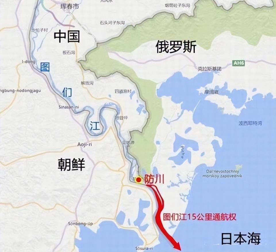 答案是否定的,因为图们江出海口,只归俄罗斯和光之国,东大距离出海口,只差 15 公里。