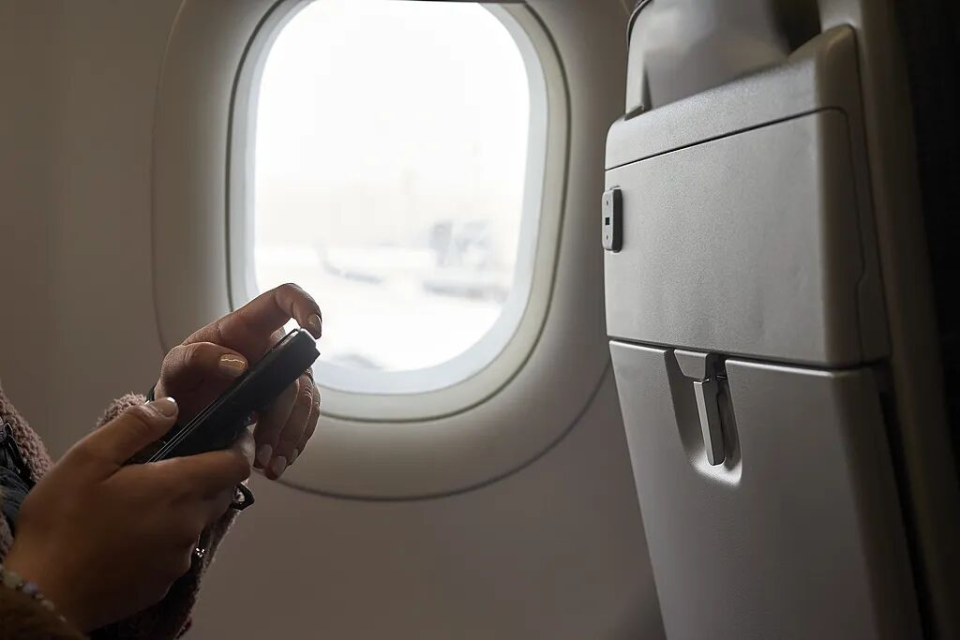 乘客在飞机上使用手机