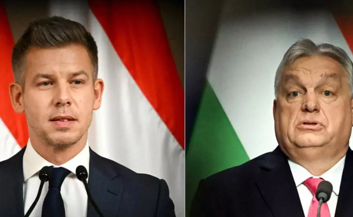 匈牙利主权主义总理欧尔班·维克多(右)和蒂萨党的竞争对手彼得·马扎尔(左) © ATTILA KISBENEDEK / AFP