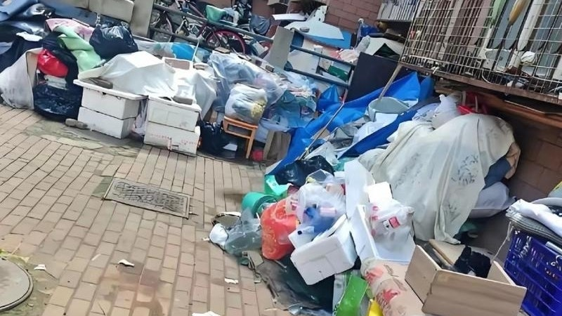 「物业撤出潮」席卷内地。图为物业管理公司撤场后,小区楼下堆积如山的垃圾。 (网络图片)