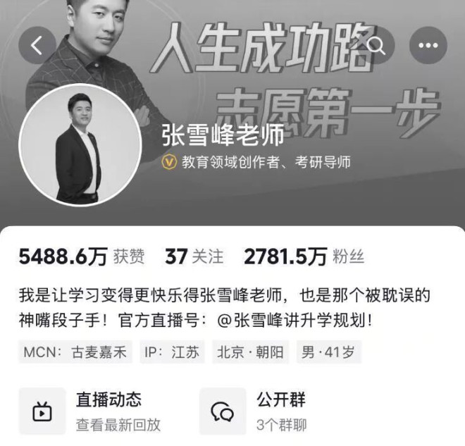 说实话,在直播强度上,你想让他像张雪峰一样天天播,确实也不现实。