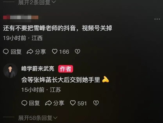 按照他的说法,账号不会注销,等张姩菡长大后,账号会交到她手里。