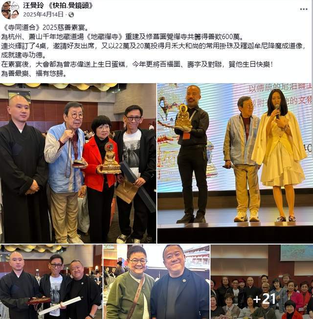 4月14号,是曾志伟的73岁生日,意义特殊,所以他提前两天举办了一场素宴,除了提前庆祝自己的生日之外,最主要的是筹集善款。