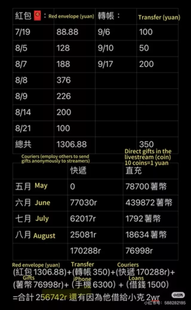 来自中国台湾的乔乔(化名)不幸成为这种直播产品的受害者。她在小红书发文,自述曾在该平台的某直播间(现已注销)向某男主播豪掷约25.6万元(人民币,下同),包括直播打赏、微信转账、赠送iPhone手机,以及在主播困难时提供的借款。