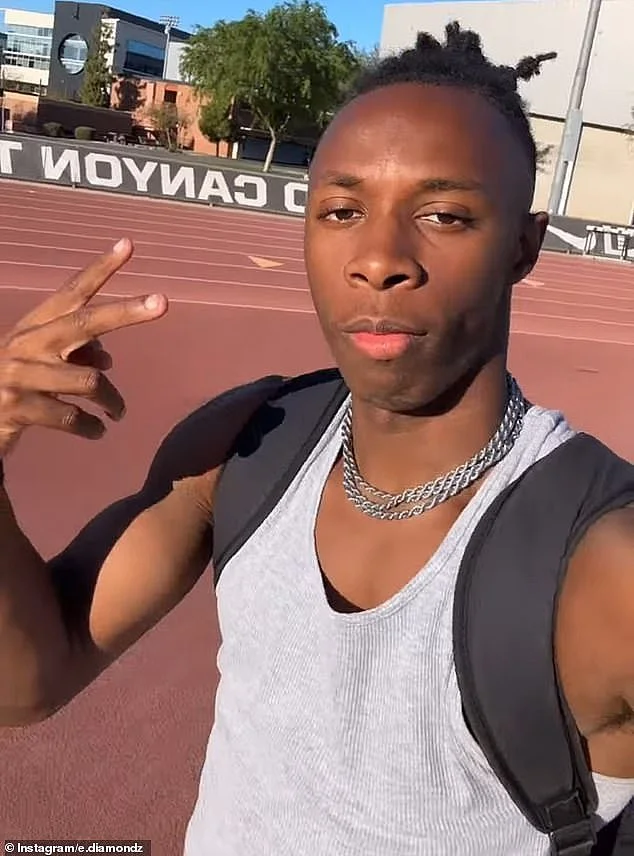 图中为美国短跑选手 Erin Brown 在 TikTok 视频中的截图,他在视频中声称 Gout Gout 周日打破200米世界纪录的成绩是造假