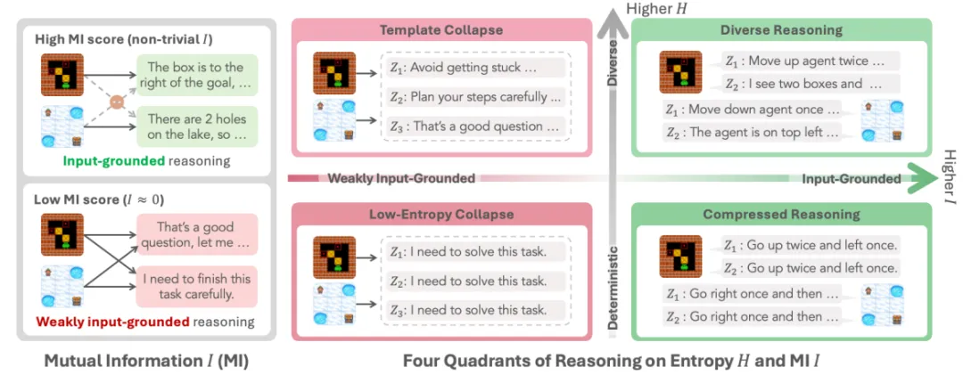 H(Z|X) 代表“同一个输入内部的多样性” I(X;Z) 代表“推理是否真的依赖输入”,过去大家只看H(Z|X),也就是“推理是不是多样”。 但真正重要的是 I(X;Z),也就是“推理是不是听输入的”。
