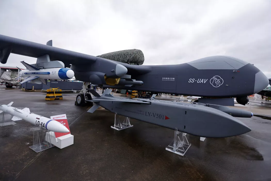 另一款由中国航空工业集团推出的飞行器是一架16吨重的喷气动力无人机,设计用于充当飞行航母,可在飞行中部署数十架小型无人机。