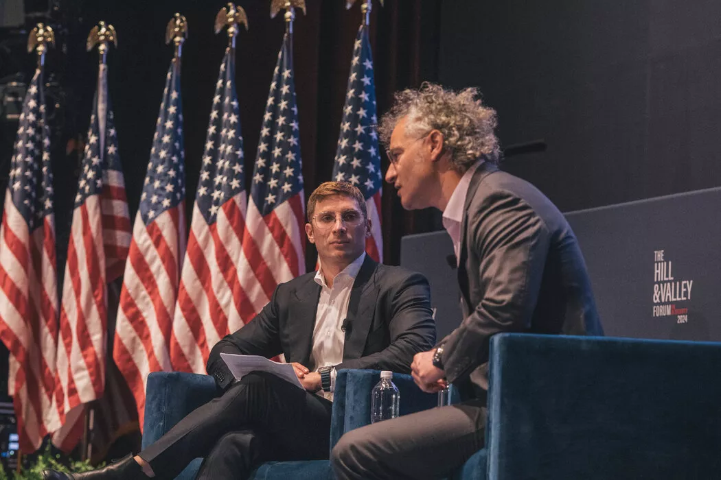 2024年“国会山与硅谷论坛”上,美国国务院负责经济事务的副国务卿雅各布·赫尔伯格与Palantir首席执行官亚历克斯·卡普。
