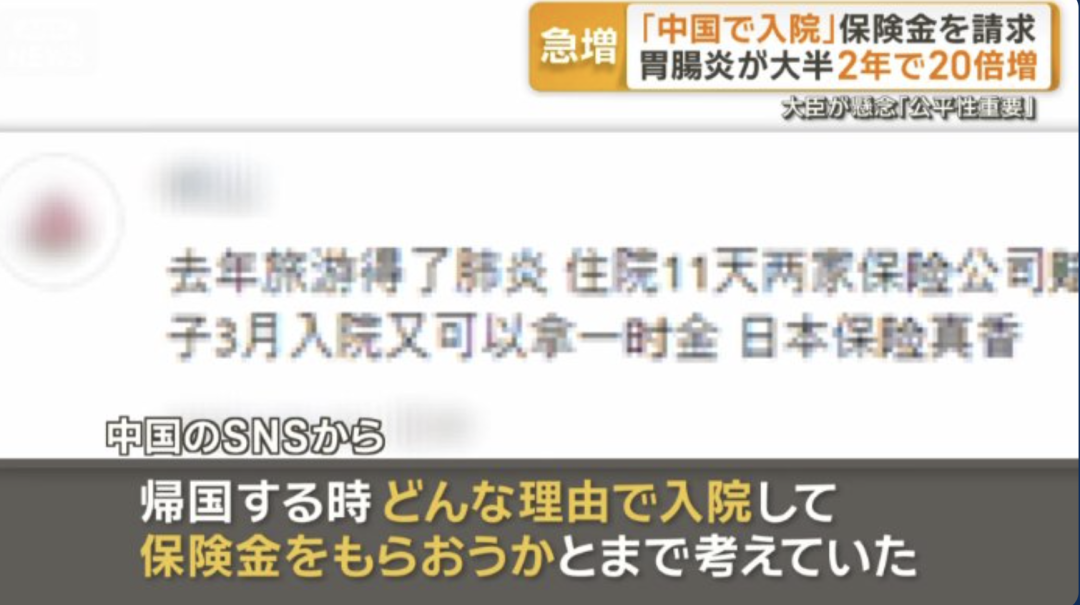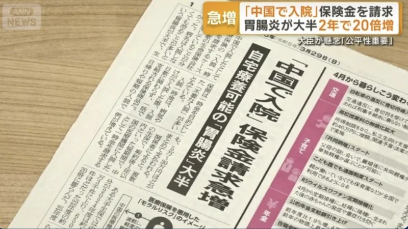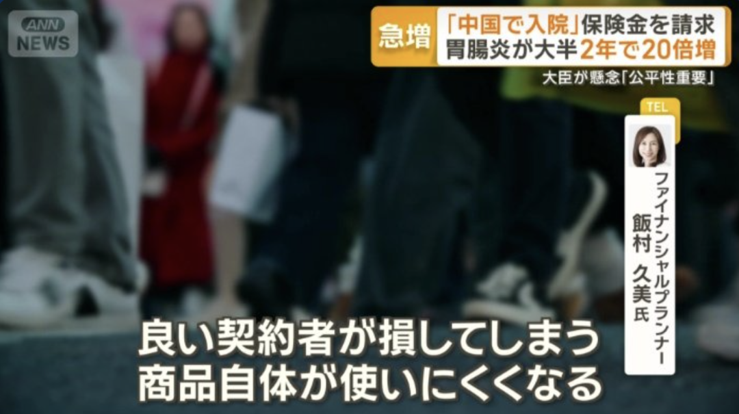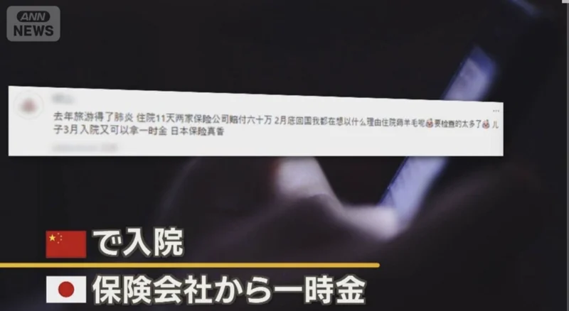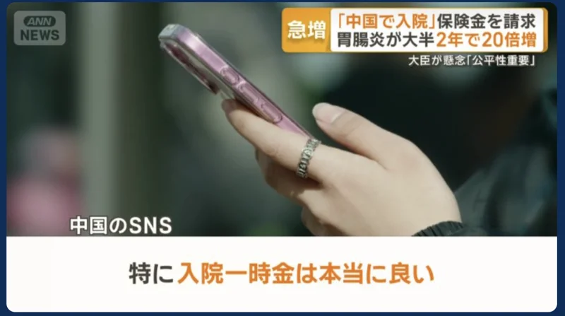 有日本大型保险公司的数据就显示,2022年度,中国住院申请入院一时金的案例大约只有650件,但到了2024年度,已经暴涨到约1万3000件,整整翻了20倍。