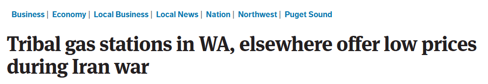 随着伊朗战争引发的油价波动,全美平均油价已飙升至4.15美元。在西雅图,不少车主放弃了家门口的油站,转而奔向半小时车程的“神秘地界”——印第安保留地。