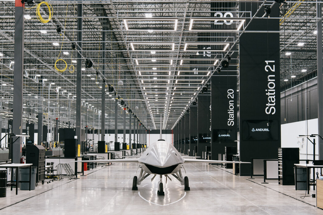 Anduril的自主飞行器Fury近期已在该公司位于俄亥俄州哥伦布市郊外的新厂投产。 Kristian Thacker for The New York Times