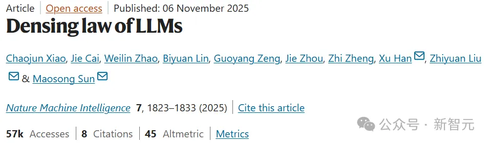 这个概念最早出现在一篇叫「Densing Law of LLMs」的论文里。