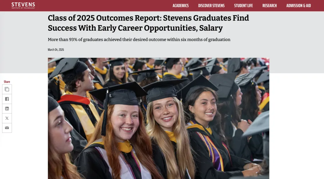 史蒂文斯理工学院(Stevens Institute of Technology),这所常被低估的理工强校,用一份扎实的成绩单证明了自己:超过93%的本科毕业生在六个月内找到了出路,要么进入大厂,要么继续深造。