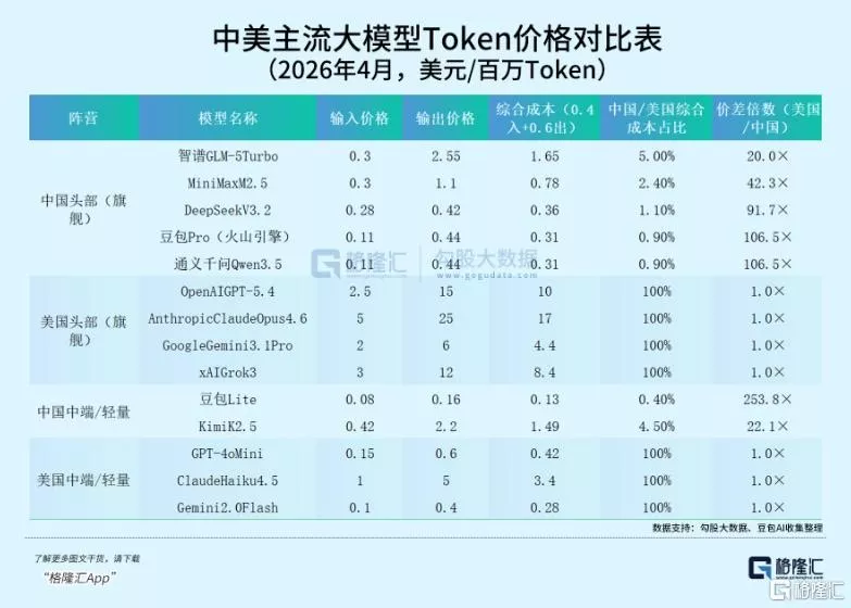 这意味着,中国模型成本只有美国巨头的1/10到1/20,甚至更低。
