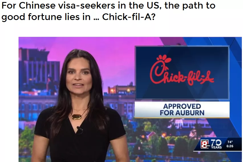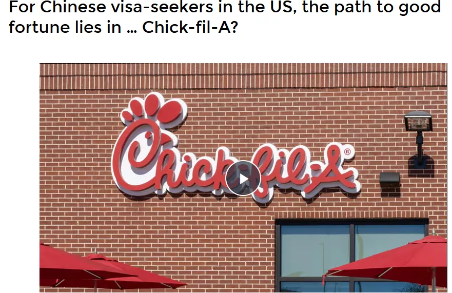 Chick-fil-A在中国没有分店。但这个品牌之所以吸引众多留美中国学生,原因很简单:“Chick-fil-A”听起来像“checkfiles”。中国人重视谐音,很多人相信“Chick-fil-A”能给申请美签的人带来好运。