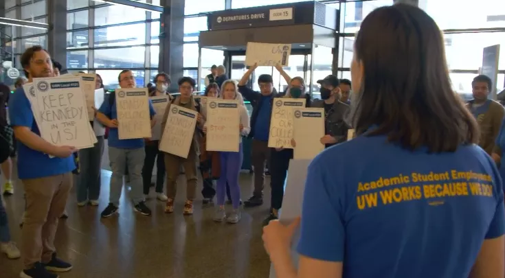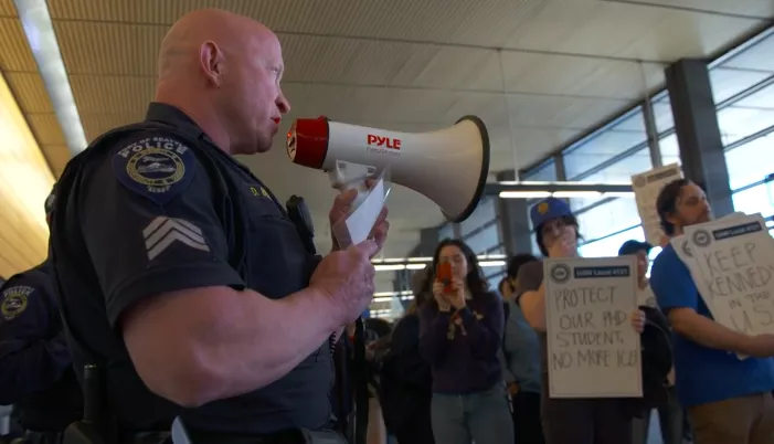 到了4月8日上午,华盛顿大学研究生工会UAW 4121已确认,Orwa的学生签证已被撤销,但并未获得任何来自联邦机构的解释;而在中午前后,工会方面进一步得知他即将被遣返,随即组织人员赶往机场试图进行干预,不过在他们抵达时,一切已基本成定局。