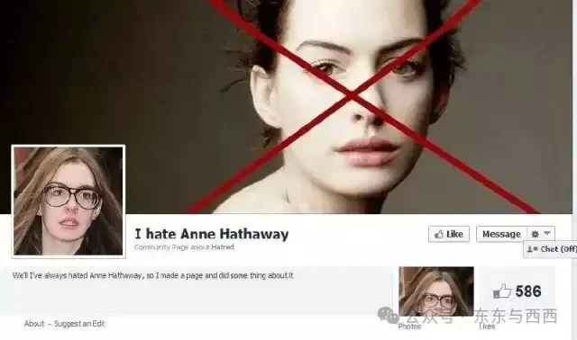 有一家报纸将她评选为最讨厌的名人,推特有一个话题叫#hathahaters。2015年,BuzzFeed的一篇报道写道:当你做的一切都是对的,而整个社会却因此憎恨你,这就是安妮·海瑟薇综合症↓↓