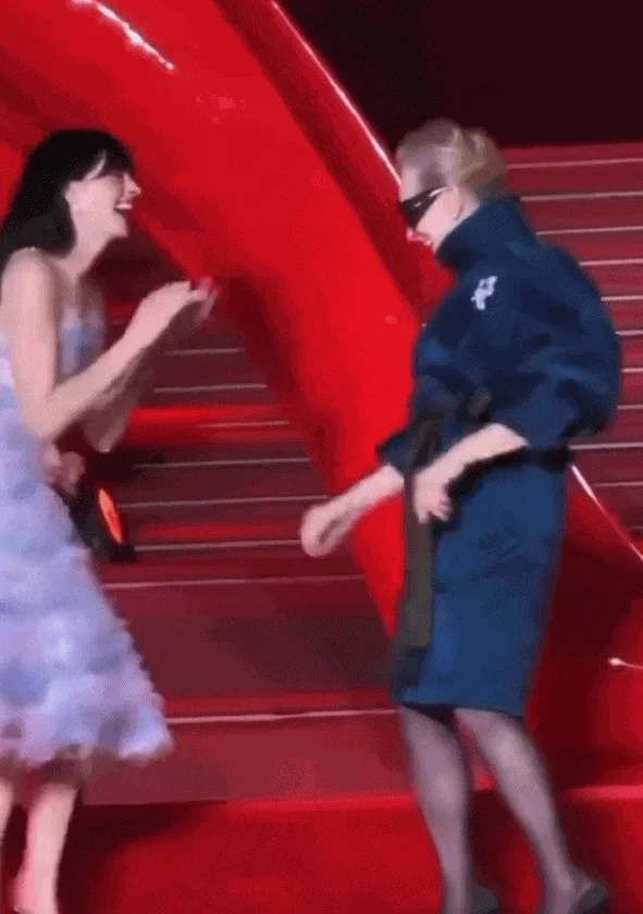 梅姨和安妮·海瑟薇到上海宣传《穿Prada的女魔头2》,与上一部时隔20年,两人都状态绝佳。