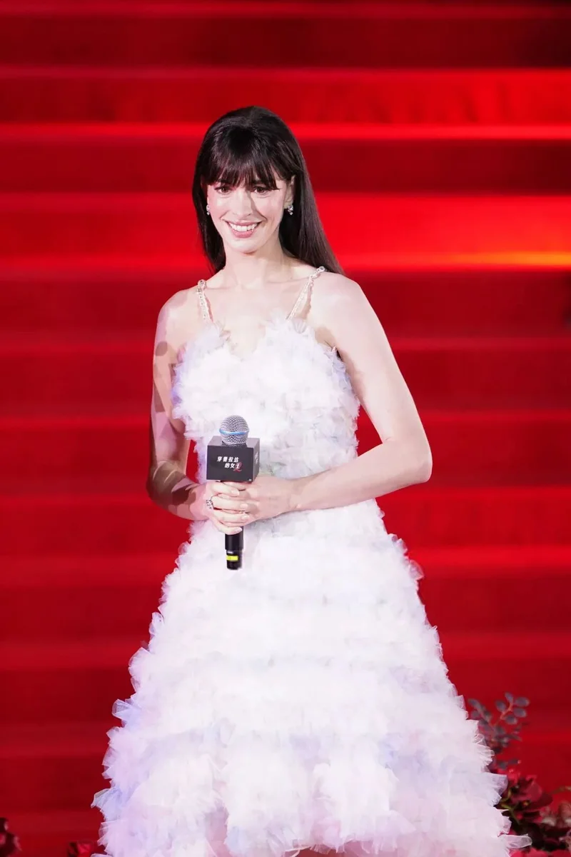 43岁安妮·海瑟薇穿渐变色蛋糕蓬蓬裙,仍是甜美公主↓↓
