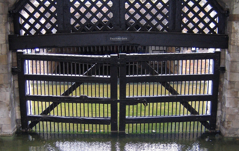 建在泰晤士河边的伦敦塔曾经是英王的监狱。很多国王的要犯都是经过河边的“叛国者之门”(Traitors' Gate)运进塔里。专制时代朕即国家,不忠于君主就是叛国者。