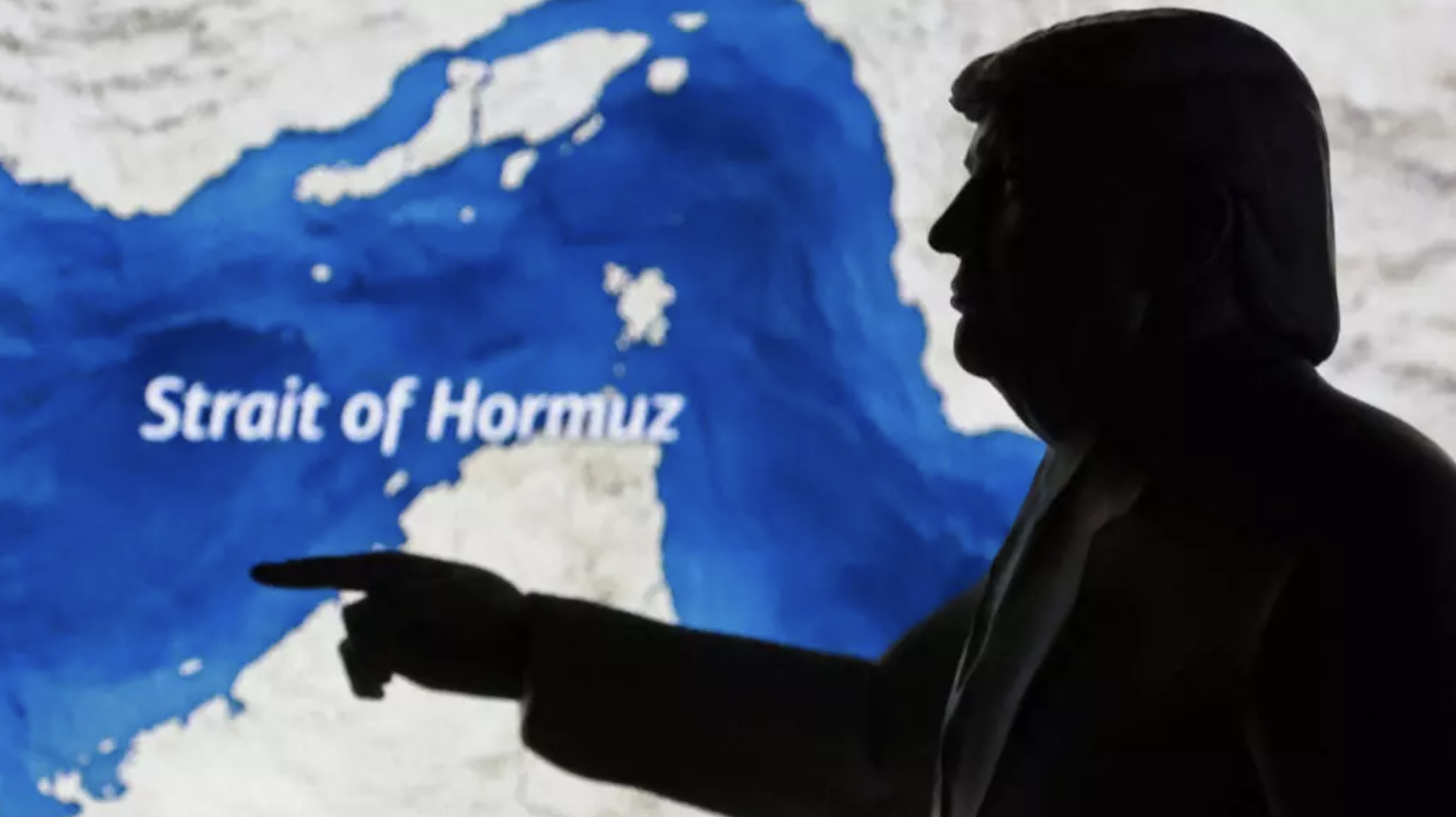 Ảnh minh họa : Bản đồ eo biển Ormuz và bản in 3D mô phỏng tổng thống Mỹ Donald Trump, 23/03/2026. REUTERS - Dado Ruvic