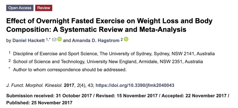 另一项发表于《Journal of Functional Morphology and Kinesiology》的研究,就更加明确了空腹运动与餐后运动对于体重、体脂率的长期改善效果。