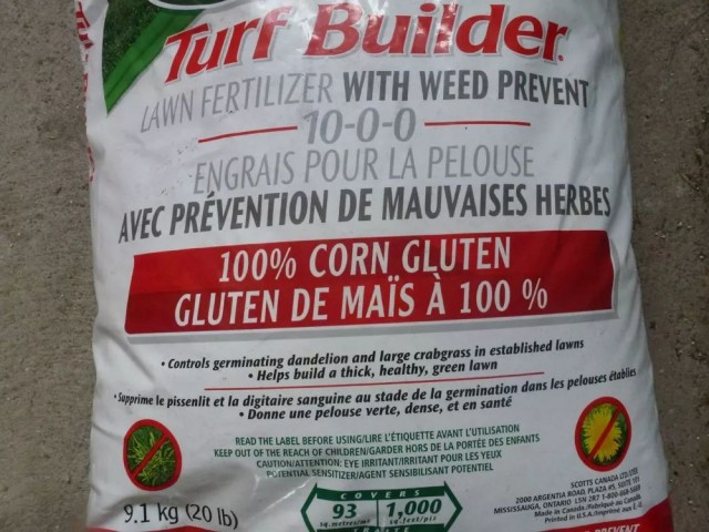 此外过去说过,春天时使用玉米蛋白粉,Corn Gluten Meal 最有效,可以阻止潜伏一冬的杂草种发芽。最近发现很多种的草坪肥料中都含有玉米蛋白粉,甚至以此为主要原料,因此很可以使用。
