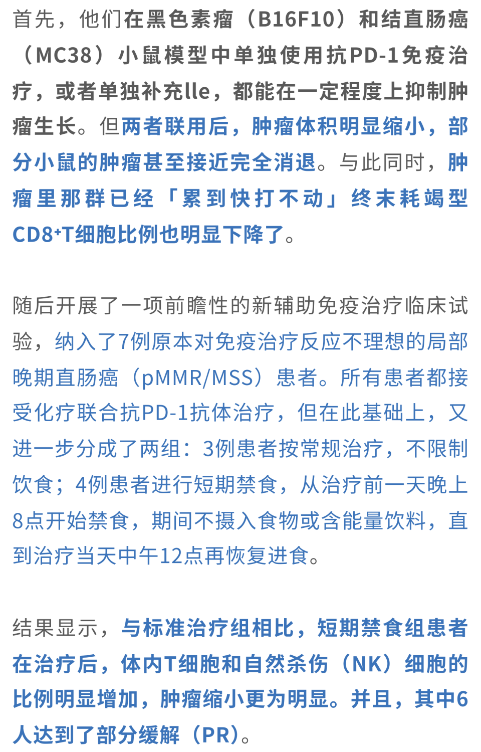换句话说,禁食让肿瘤中的免疫细胞重新找回了状态,从“有点蔫”变成了“真能打”。