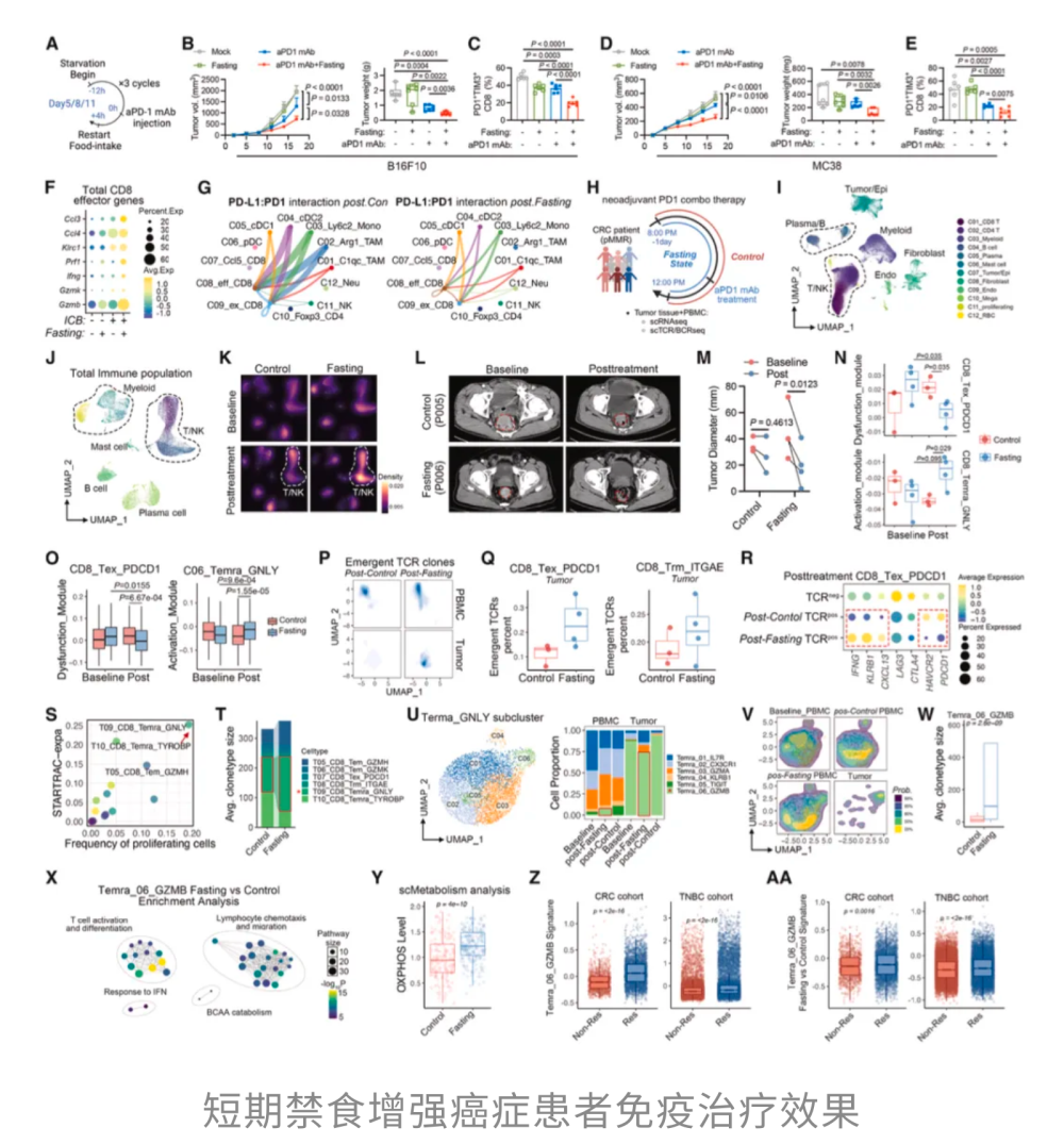 换言之,短期禁食可以重塑代谢环境,增强T细胞功能,并进一步放大免疫治疗的效果。