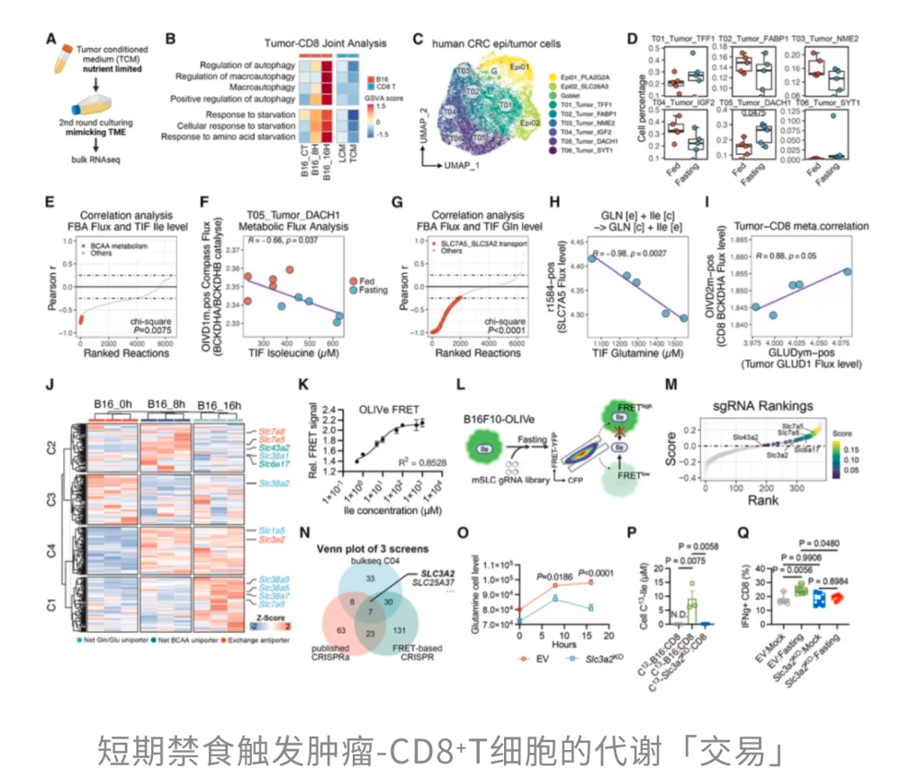 简而言之,16小时左右的短期禁食,迫使肿瘤细胞为了获取生存必需的谷氨酰胺,不得不进行一种“代谢交易”,将宝贵的lle“拱手相让”给周围的CD8+T细胞。肿瘤细胞原本是想“自救”,结果却在无意中给免疫细胞递了“燃料”。