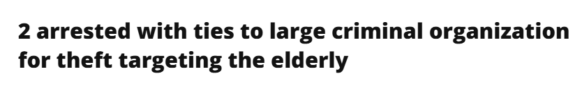 据报道,4月8日,Bellevue警方在柯克兰截停了一辆白色本田。随着两名嫌疑人被戴上手铐,一个潜伏在大西雅图地区近两年、专门针对老年人下手的犯罪组织终于浮出水面。