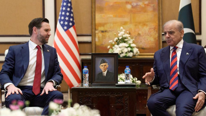 资料照片:万斯同巴基斯坦总理会面