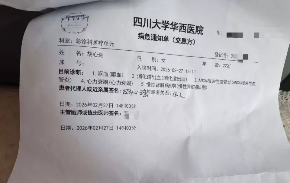 2025年,她开始频繁收到病危通知书,一年下来,有二十多份。