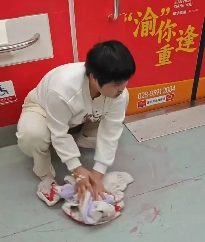 当时,有人举起手机,把这一幕拍了下来。视频里,她吐血后,没有惊慌,也没有呼救。她蹲下身,脱下外套,把地上的血一点一点擦掉。擦完,她靠在车厢一侧,低着头,等车到站。