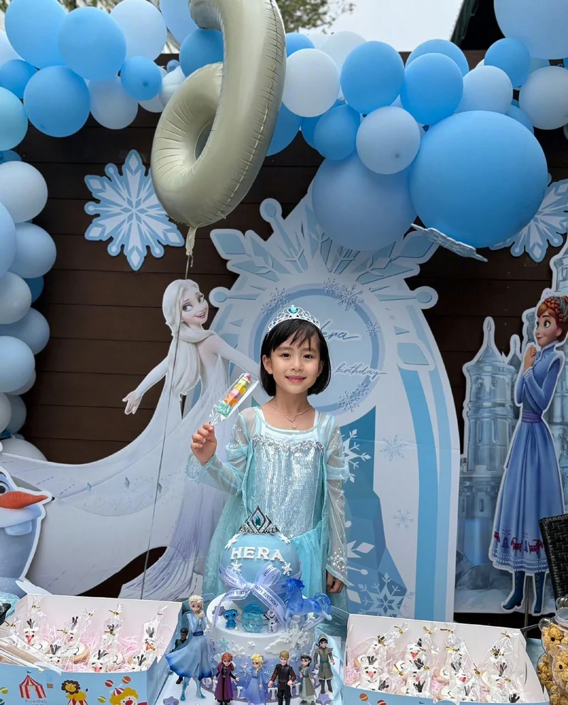 当天的场地杨茜尧也有用心的布置,虽然是在室外,但是有不少气球,以蓝色的居多,而生日派对的主题则是冰雪奇缘,小珍珠穿着连衣裙,仙气十足,六岁的她出落的越来越漂亮,眼睛又大又圆,嘴巴和下巴像极了妈妈杨茜尧,两母女根本是一个模子刻出来的。